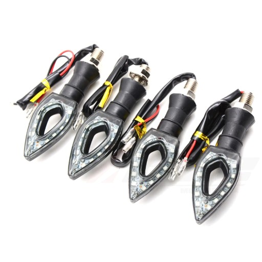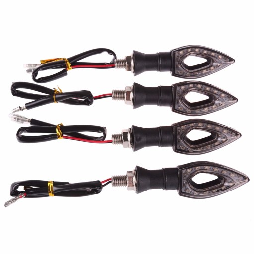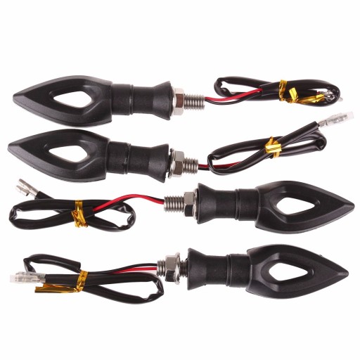 Nowoczesny wzór kierunkowskazów zapewni każdemu pojazdowi świeży i atrakcyjny wygląd. Jest to zestaw kierunkowskazów LED przeznaczony dla osób chcących osiągnąć unikatowy wygląd swoich motocykli.