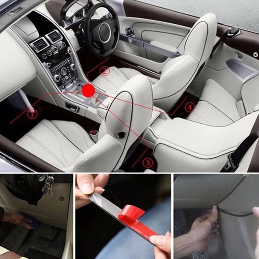 Taśmy mocowanie są za pomocą taśmy 3m. Listwy można przyklejać nad miejscami na nogi, pod siedzeniami, w kokpicie, pod drzwiami lub w bagażniku. Jest to proste rozwiązanie gotowe do montażu dla każdego modelu samochodu. Taśmy są zabezpieczone wodoszczelną powłoką.