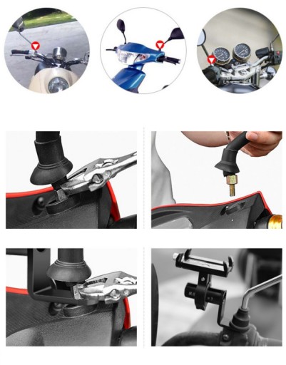 Montaż odbywa się pod lusterkiem lub pod jakąkolwiek śrubą max 10mm.