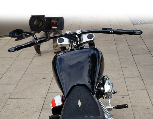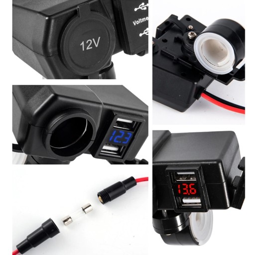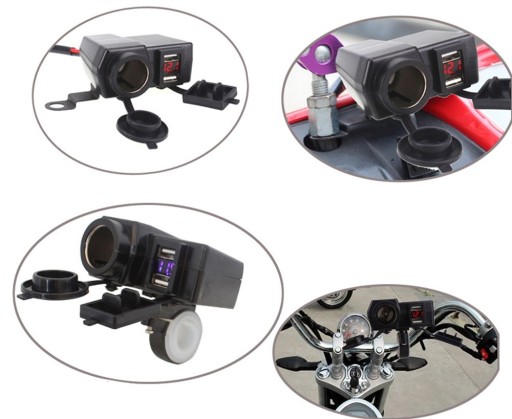 Gniazdo posiada włącznik ON/OFF i kabel o długości ok. 55cm do podłączenia do akumulatora. Dzięki dwóm uchwytom w zestawie możemy zamontować uchwyt na kierownicy, pod lusterko lub do jakiejkolwiek śruby na kierownicy max 10mm. Produkt posiada również wymienny bezpiecznik chroniący instalację motocykla. Zasilacz został zaprojektowany do działania w niesprzyjających warunkach atmosferycznych i jest wyposażony w gumowe osłony gniazd zabezpieczające przed wodą.