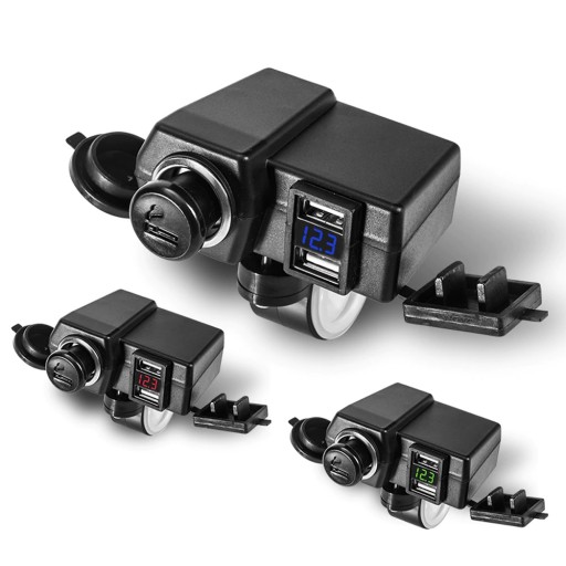 Gniazdo zapalniczki z woltomierzem i dwoma portami USB