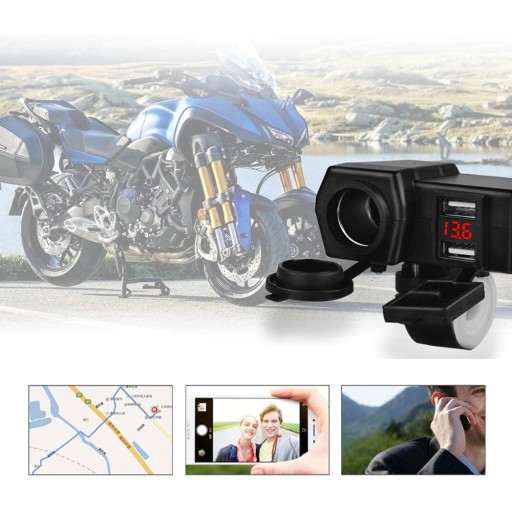 Wodoodporne gniazdo zapalniczki do motocykla z cyfrowym woltomierzem wyświetlającym aktualny poziom napięcia akumulatora. Najważniejszą zaletą uchwytu są dwa porty USB szybkiego ładowania o napięciu 5V 3.1A (2.1A + 1A), dzięki którym już nigdy nie rozładuje Ci się telefon podczas wyprawy. Zestaw umożliwia jednoczesne korzystanie z obu gniazd, czyli ładowanie np. nawigacji i telefonu w tym samym czasie.