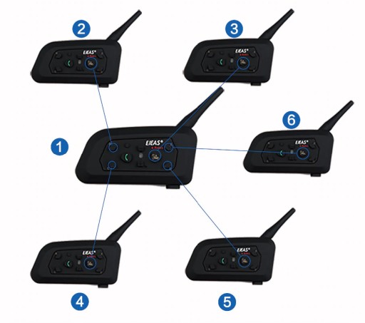 V6 PRO łączy się również z innymi interkomami marki EJEAS oraz innych marek takich jak VNETPHONE, LEXIN itd.