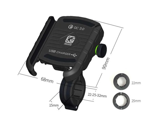 ДЕРЖАТЕЛЬ ДЛЯ МОТОТЕЛЕФОНА GPS USB QC3.0 3,5-6,5