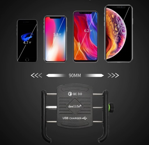 Uchwyt na telefon typu jest bardzo solidnie wykonany. Posiada 3 szyny mocno ściskające ramiona uchwyty. Ogromne możliwości dopasowania telefonu od 3,5 do 6,5 cali sprawią że produkt nadal będzie użyteczny nawet jeśli zmienimy telefon na inny. Można w nim zamontować dowolne urządzenie takie jak GPS o szerokości 58mm-90mm. Dzięki przegubowi kulowemu z regulacją obracania o 360 stopni można idealnie ustawić uchwyt do swoich potrzeb. Dzięki dwóm uchwytom w zestawie możemy zamontować uchwyt na kierownicy o średnicy 22-32mm, pod lusterko lub do jakiejkolwiek śruby na kierownicy max 10mm.