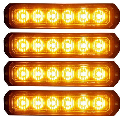 Zestaw 4x lampa ostrzegawcza / błyskowa 6 LED pomarańczowa - 18W - MOCNE !