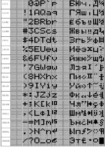 Tablica znaków: ENGLISH/cyrylica