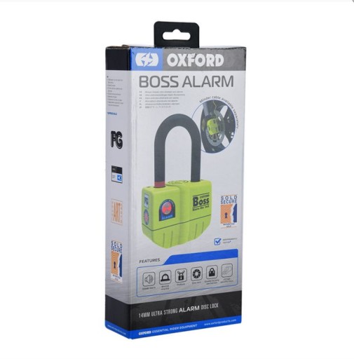Blokada tarczy hamulcowej kłódka Oxford Boss z alarmem 100 dB, szekla 14mm