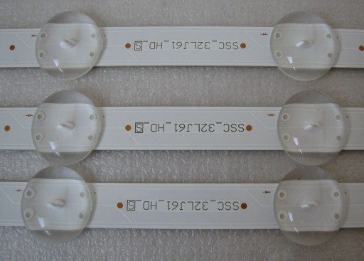 Oryginalne podświetlanie matrycy / listwy LED SSC_32LJ61_HD_8LED_REV03 / SSC_32LJ61_HD - w 100% kompatybilne z modelem SSC_Y19_32LM63_REV00 stosowane w wielu modelach telewizorów LG w rozmiarze 32 cale. Listwy NOWE, 100% sprawne i oryginalne, z miedzianym spodem oraz wersja SSC-Y19 32LM63 na aluminium. Dodatkowo podklejone są specjalna taśmą termo-przepuszczalna firmy 3M żeby dobrze dolegały do obudowy i odprowadzały ciepło.