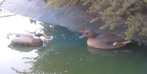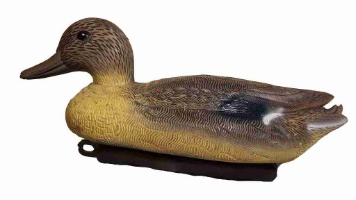 Kaczka ta ma postać dobrze znanej miłośnikom stawów ogrodowych przepięknej kaczki krzyżowki wykonanej tak starannie, że na pierwszy rzut oka trudno odróżnić od prawdziwego, żywego ptaka.
