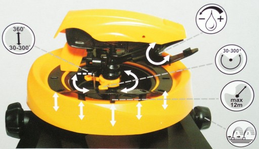 proste nastawienie zasięgu zraszacza w celu dopasowania do kształtu zraszanej powierzchni.