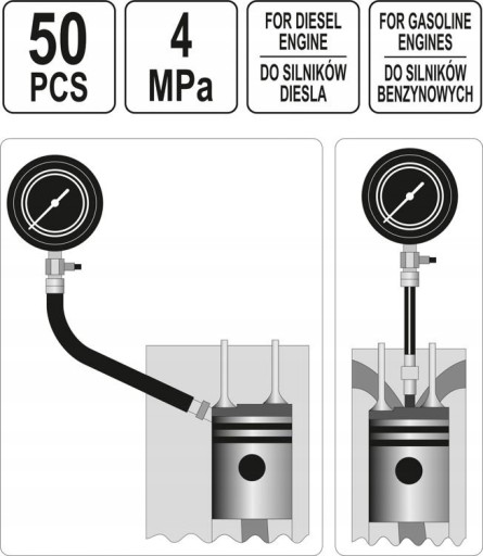 MIERNIK CIŚNIENIA SPRĘŻANIA W SILNIKACH DIESLA I BENZYNOWYCH. 50 ELEMENTÓW.