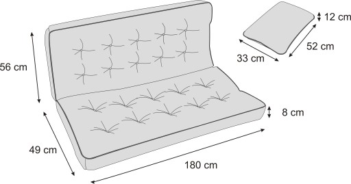 Nasz produkt pasuje do większości huśtawek oraz oraz ławek ogrodowych. Wykonany został z największą starannością, uszyty i wypchany na maszynach ręcznych. Małe poduszki posiadają ściągany pokrowiec, który umożliwia wypranie go w pralce. Niestety dużą poduchę, z racji gabarytów należy czyścić w inny sposób. Tkanina wykorzystana do produkcji jest wytrzymała. Nie odbarwia się i w przypadku większości zabrudzeń do ich usunięcia wystarczy wilgotna ściereczka.