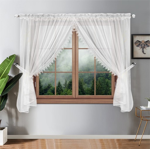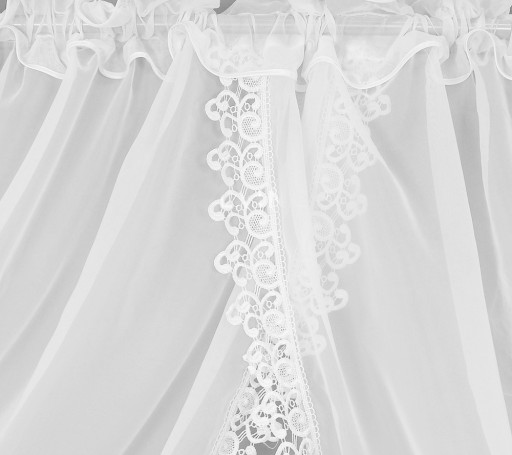 Proponowana firana wykonana jest z doskonałej jakości woalu w śnieżnobiałym odcieniu, który pasować będzie do każdego pomieszczenia. Jest to model całkowicie gładki z dodatkiem pięknej gipiury, dzięki czemu bez większego trudu można dobrać do niego zasłony w każdym kolorze oraz fasonie. Firana posiada wymiary 150x400 i jest bardzo wygodna w zawieszeniu, ponieważ posiada prostą w obsłudze taśmę marszczące dzięki której firanę można powiesić na żabkach, haczykach. Tę elegancką firanę założyć można także bezpośrednio na karnisz, dzięki czemu prezentuje się ona jeszcze lepiej. Atutem przedstawionego modelu jest przede wszystkim piękna gipiura o szerokości 8cm.
