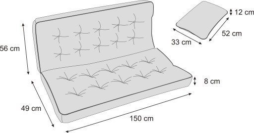 asz produkt pasuje do większości huśtawek oraz oraz ławek ogrodowych. Wykonany został z największą starannością, uszyty i wypchany na maszynach ręcznych. Małe poduszki posiadają ściągany pokrowiec, który umożliwia wypranie go w pralce. Niestety dużą poduchę, z racji gabarytów należy czyścić w inny sposób. Tkanina wykorzystana do produkcji jest wytrzymała. Nie odbarwia się i w przypadku większości zabrudzeń do ich usunięcia wystarczy wilgotna ściereczka.