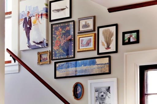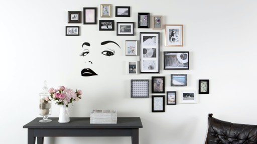 Uchwyt jest całkowicie schowany pod obrazem, pozwala eksperymentować z aranżacją, nie robiąc dziur przy zawieszaniu, i nie niszcząc powierzchni przy odklejaniu.