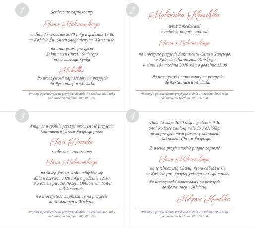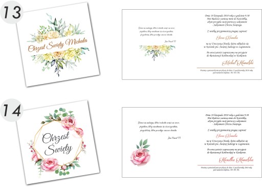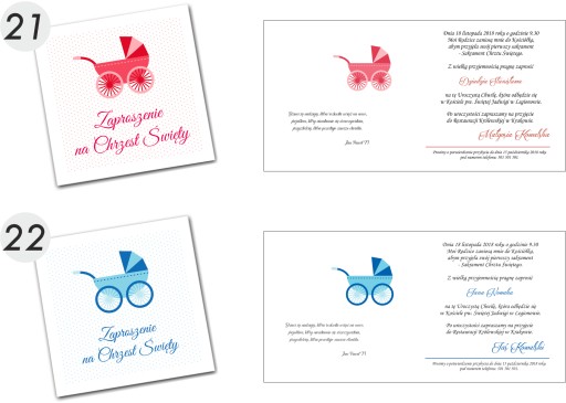 Zaproszenia na uroczystość przyjęcia Chrztu Świętego