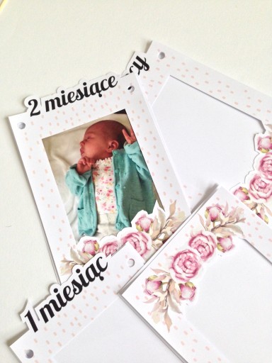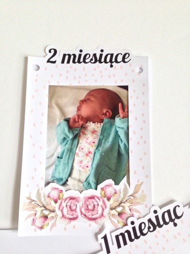Girlanda na zdjęcia dziecka z pierwszych 12 miesięcy życia. Czyli 12 sztuk ramek z oznaczeniem miesięcy i okienkiem na Twoje zdjęcie w otoczeniu pięknych kwiatów.