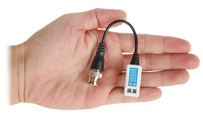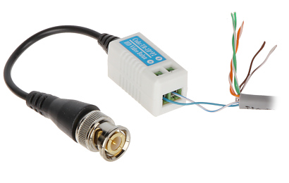Urządzenie dopasowuje impedancję kabla koncentrycznego 75Ω do impedancji przewodu symetrycznego zapewniając przesył sygnału wizyjnego do 400m (skrętka komputerowa 5 kategorii) oraz eliminuje zakłócenia niesymetryczne. Należy zwrócić uwagę na prawidłowe połączenie zacisków (+) oraz (-) Odwrotne połączenie spowoduje zakłócenia obrazu.