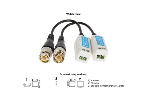 ZESTAW ZŁĄCZY DO KAMER, ZŁĄCZA DO KAMER AHD, HD-CVI ,HD-TVI, CVBS, DO SKRĘTKI, SKRĘCANE, TRANSFORMATOR VIDEO, TRANSMISJA PO SKRĘTCE UTP TR-1D/KPL