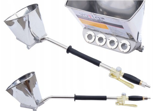 Wysokiej jakości tynkownica pneumatyczna przeznaczona do nanoszenia na ściany różnego rodzaju zapraw gipsowych, cementowych, wapiennych, wapienno-cementowych, glinianych, tynków renowacyjnych, tynków tradycyjnych itp.