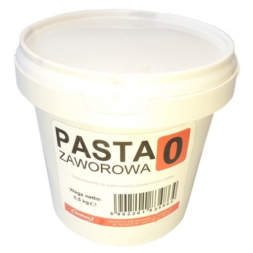Pasta zaworowa do polerowania metali. Stosowana w motoryzacji do docierania zaworów silnikowych. Pastą można polerować metale, jest rozcieńczalna w oleju. Oznaczenia ziarnistości pasty nr:0. "DROBNA"