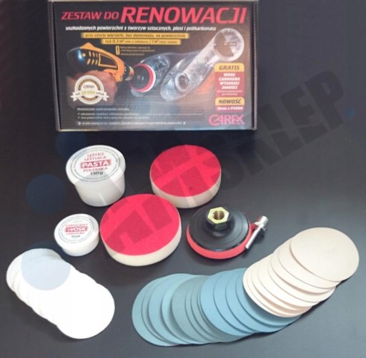 CAREX - zestaw do renowacji reflektorów przy użyciu wiertarki, bez demontażu