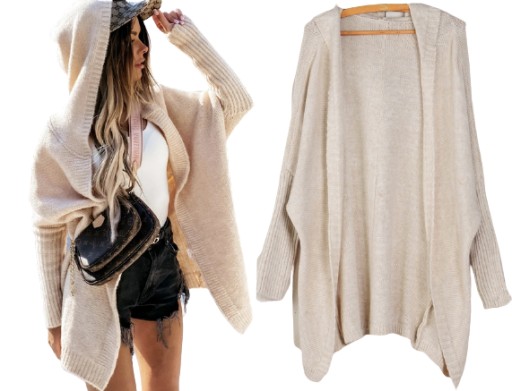 ТЕПЛЫЙ КАРДИГАН ДЖЕМПЕР С КАПЮШОНОМ ЦВЕТА K45