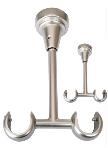 METALOWY PODWÓJNY WSPORNIK SUFITOWY DO KARNISZA Fi 19+19mm SATYNA .
