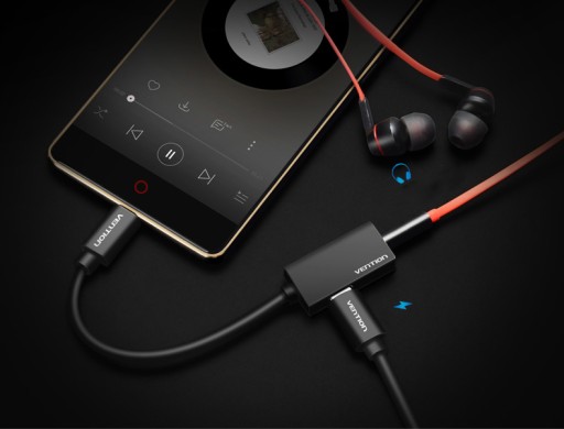 Wysokiej jakości adapter umożliwiający podłączenie słuchawek ze standardowym wtykiem mini jack 3.5mm przy jednoczesnej możliwości ładowania telefonu
