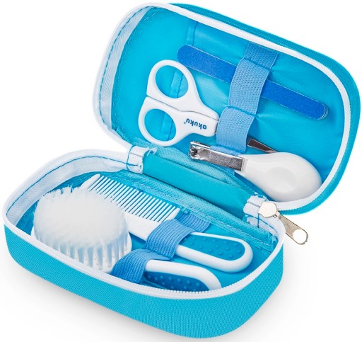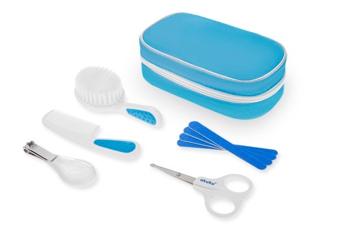 Zestaw Akuku do manicure składa się z nożyczek, cążków, szczotki, grzebyczka i czterech małych pilników. Całość znajduje się w estetycznym futerale o formie piórnika - kosmetyczki. Specjalna konstrukcją przyrządów gwarantuje ich bezpieczne użycie. Zestaw pielęgnacyjny jest bardzo praktyczny.