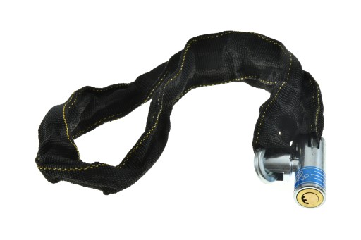 Mocny, solidny łańcuch wykonany jest z wysokiej jakości hartowanej stali. Pancerny zamek jest hartowany, zaś jego konstrukcja zabezpiecza przed próbami podważenia i rozwiercenia zamka. Łańcuch został pokryty estetycznym i odpornym na działanie warunków atmosferycznych materiałem, zabezpieczającym dodatkowo rower przed porysowaniem. Długość 80 cm pozwala na swobodne zabezpieczenie roweru.