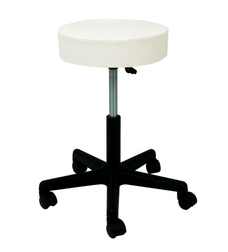 Siedzisko osadzone jest na stabilnej pięcioramiennej podstawie. Dołączony komplet kółek pozwala na swobodne przemieszczanie taboretu podczas zabiegów. Dodatkowo samo siedzisko również jest obrotowe.