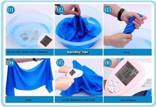 Zawsze wtedy, kiedy potrzebujesz ochłodzenia wystarczy namoczyć ręcznik w wodzie, delikatnie wycisnąć nadmiar wody i można cieszyć się z przyjemnego uczucia chłodzenia, jaki daje ten produkt.