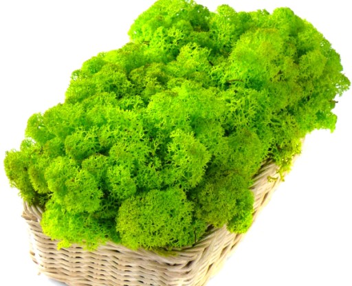 Kolorowy preparowany mech reniferowy ma zastosowanie w szeroko rozumianej florystyce, dekoratorstwie i architekturze.