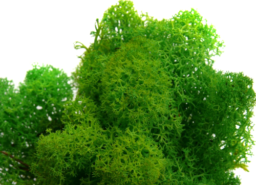 Cieszące się coraz większą popularnością ściany z mchu tak naprawdę „porasta” nie mech, a porost: chrobotek reniferowy (Cladonia ragniferina). Jest to niesamowity gatunek z pogranicza świata glonów i grzybów o drzewkowatym pokroju i zachowujący zielone, atrakcyjne wybarwienie, nawet pozostając bez kontaktu z podłożem. Te cechy zostały wykorzystane przy tworzeniu z owych porostów modułów, a nawet całych, zielonych powierzchni.