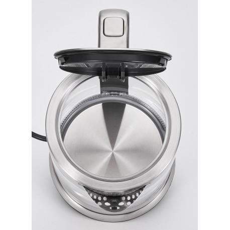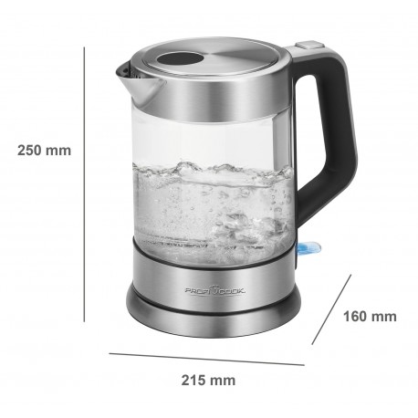 Szklany czajnik marki ProfiCook łączy w sobie wygodę korzystania z estetycznym wyglądem. Wykonany z przezroczystego szkła i solidnej stali nierdzewnej, pozwala on zachować naturalny smak wody, dzięki czemu możemy delektować się doskonałym smakiem herbaty, kawy, ziół. Uwagę zwraca również przeźroczysty korpus, dzięki któremu można podziwiać efekty wywołane ruchem gotującej się wody