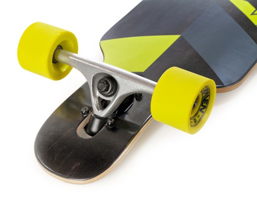 - Drop-Thru – tracki zamontowane poprzez specjalny otwór w decku sprawiają, że znajduje się on nisko nad ziemią. Umożliwia to łatwiejsze odpychanie i obniża środek ciężkości znacząco wpływa na stabilność deski.
