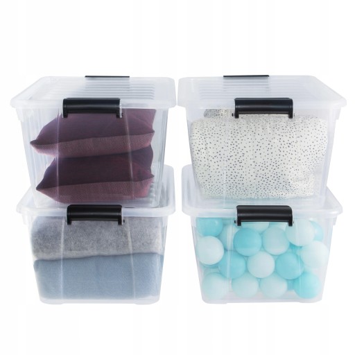 ✅Przezroczysty pojemnik w kształcie prostokątnym o pojemności 30 l, wykonany z wytrzymałego plastiku.
