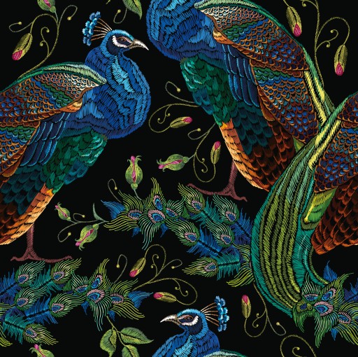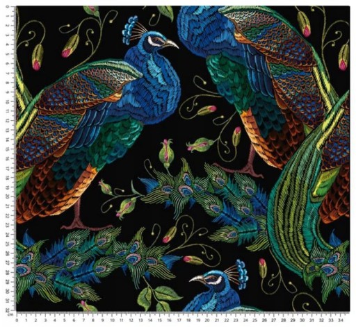 ТКАНЬ С ПРИНТОМ с узорами павлинов, бархат JARDEX09