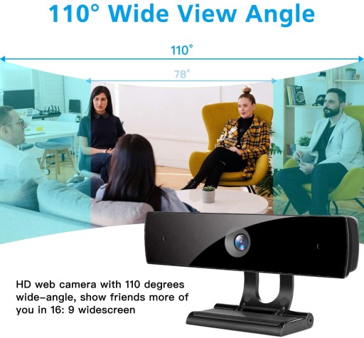 Kamera internetowa 1080P ma kąt widzenia 110 stopni, pokaż znajomym więcej na ekranie panoramicznym 16:9, łatwe do strumieniowego przesyłania wideo, udostępniaj nagrane filmy lub vblog. Idealny do konferencji, rozmów wideo, transmisji na żywo, nagrywania, gier itp