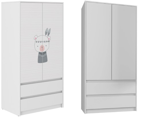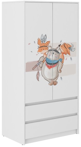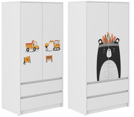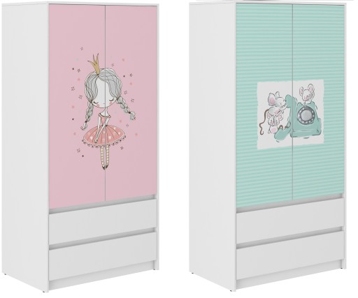 Nowoczesna szafa B-9 to praktyczny i funkcjonalny mebel, który znajdzie swoje zastosowanie w każdym pokoju dziecięcym. Ergonomiczne wymiary zapewniają swobodne umeblowanie pomieszczenia. Szafa wykonana jest z płyty wiórowej kolor biały, wykończony okleiną. Drzwi posiadają kolorowy nadruk. Nadruk posiada ładne żywe kolory, które są zabezpieczone specjalnym laminatem aby nie uległy wyblaknięciu lub ścieraniu. Można bez obaw myć go ściereczką i płynem.