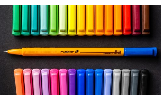 Cienkopis Rystor RC-04 - niezawodny, idealny do pisania i pracy z linijką. Tusz na bazie wody, może być pozostawiony bez zatyczki przez wiele dni - nie zaschnie zgodnie z wymogami normy ISO 554 (nie krócej niż produkty z systemem „dry safe ink” i „cap off”). Fibrowa końcówka oprawiona w metal idealnie współpracuje ze wszelkimi przyborami kreślarskimi tworząc precyzyjne linie. Praktyczna, wentylowana skuwka zaopatrzona została w wygodny klip. Korek w obudowie i nasadka określa kolor tuszu.