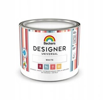 Beckers Designer Universal White to wodorozcieńczalna emalia przeznaczona do dekoracyjno-ochronnego malowania powierzchni drewnianych i drewnopochodnych takich jak: drewniane zabawki, sklejka, płyty pleśniowe, płyty wiórowe, płyty fornirowane, zagruntowanych powierzchni metalowych, lamperii i tynków wewnątrz budynków. Może być również stosowany do renowacji starych wymalowań, kaloryferów oraz mebli ogrodowych. Produkt do zastosowania wewnątrz i na zewnątrz pomieszczeń.