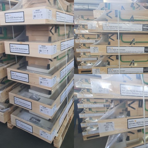 Bezpieczna dostawa na palecie. Schody są zabezpieczone z każdej strony i na pewno dojadą bez uszkodzeń.