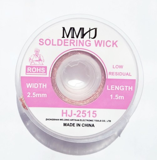 Taśma rozlutowująca - odsysająca roztopione spoiwo lutownicze popularnie zwana plecionką niezastąpiona w serwisie elektronicznym.