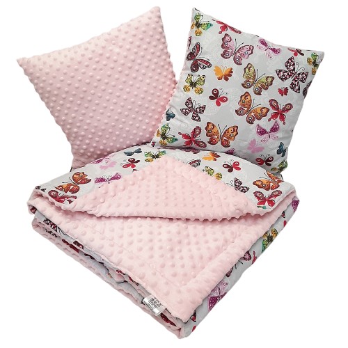 Dodatkowo 2 poduszki 40x40cm, (minky+bawełna) z wkładem z kulek sylikonowych antyalergicznych.