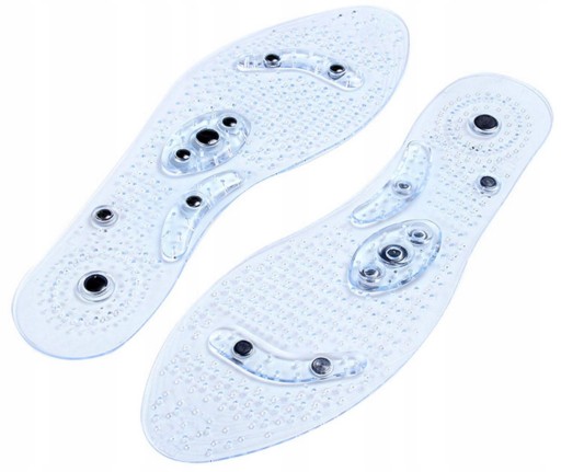 Wkładki posiadają magnesy, które stymulują zakończenia nerwowe spodniej części stóp, zapewniają masaż i poprawiają przepływ krwi