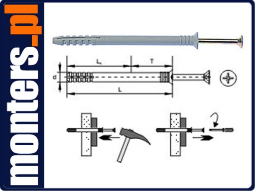 Zastosowanie: do lekkich zamocowań w pełnych materiałach budowlanych: kamieniu naturalnym betonie, cegle.