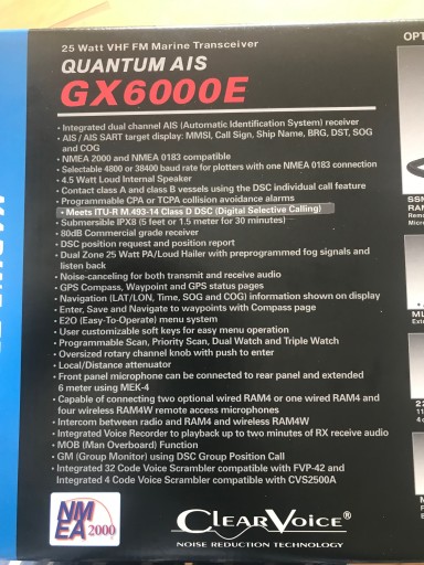 Radiotelefon morski z wbudowanym dwukanałowym odbiornikiem AIS (Automated Identification System) i zewnętrzną anteną GPS SCU-31 w komplecie oraz NMEA2000 oraz NMEA0183.